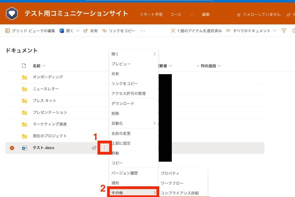 - SharePointのライブラリにアクセスし、対象のファイルを見つけます。
