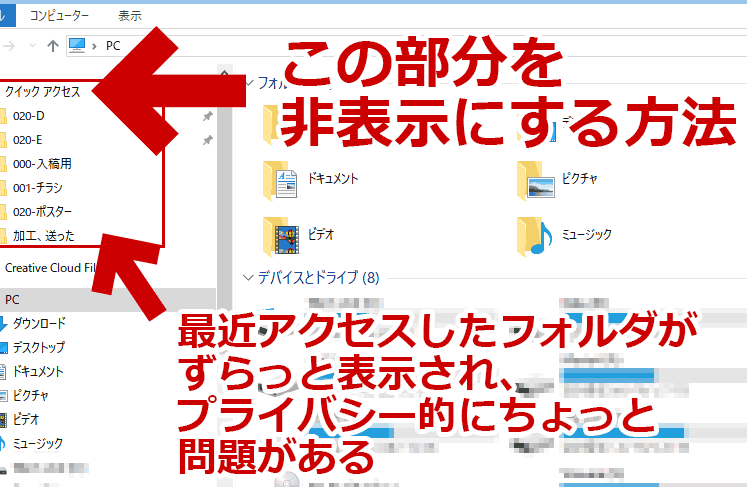 Windows10 における非表示ファイルの設定