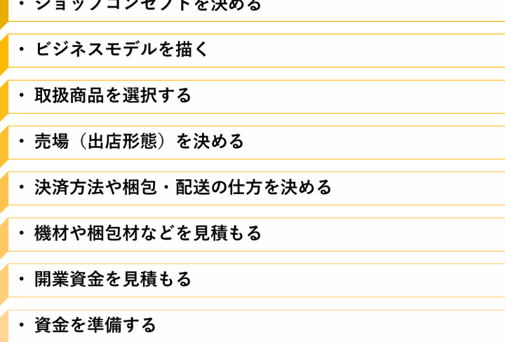 - 予算を決める。ショップに必要な資金を明確に設定します。