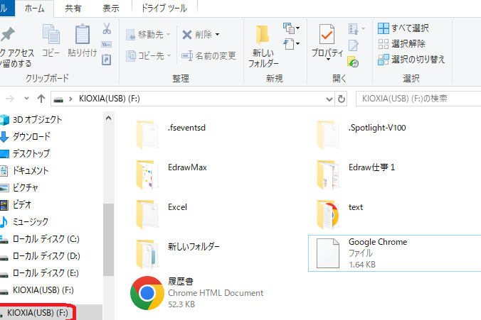 - 内容を表示: USBドライブが開いたら、ファイルやフォルダを見ることができます。