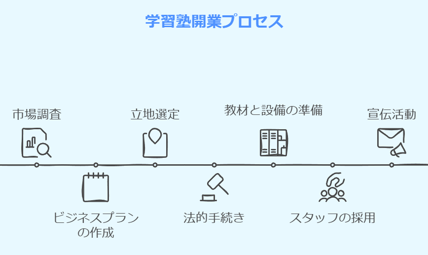 塾を開く手順は明確です。次のステップを踏むことで、成功への道が開けます。