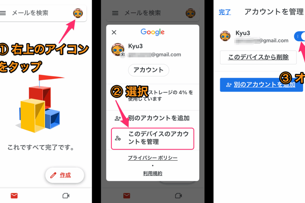 - アプリを再起動する。 Gmail アプリを再度開き、正常に動作するか確認します。