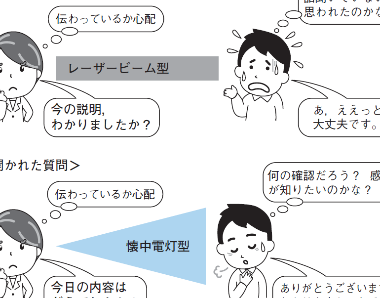 - 全体の流れを管理する。質問と回答のリズムを意識し、進行が滞らないようにします。