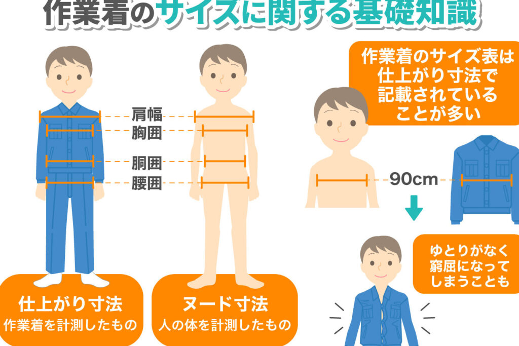 - 体型に合ったサイズを確認する。 サイズチャートを参照し、自分の測定値に合ったサイズを探す。