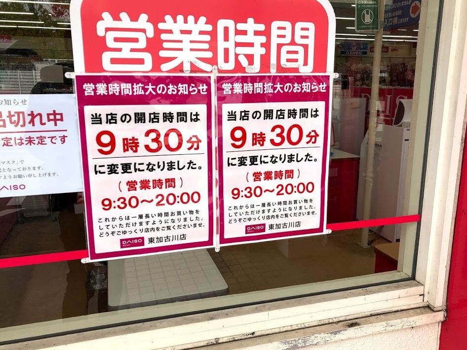 - アプリをダウンロードする。 百均チェーンの公式アプリをインストールすれば、営業時間を簡単に確認できます。