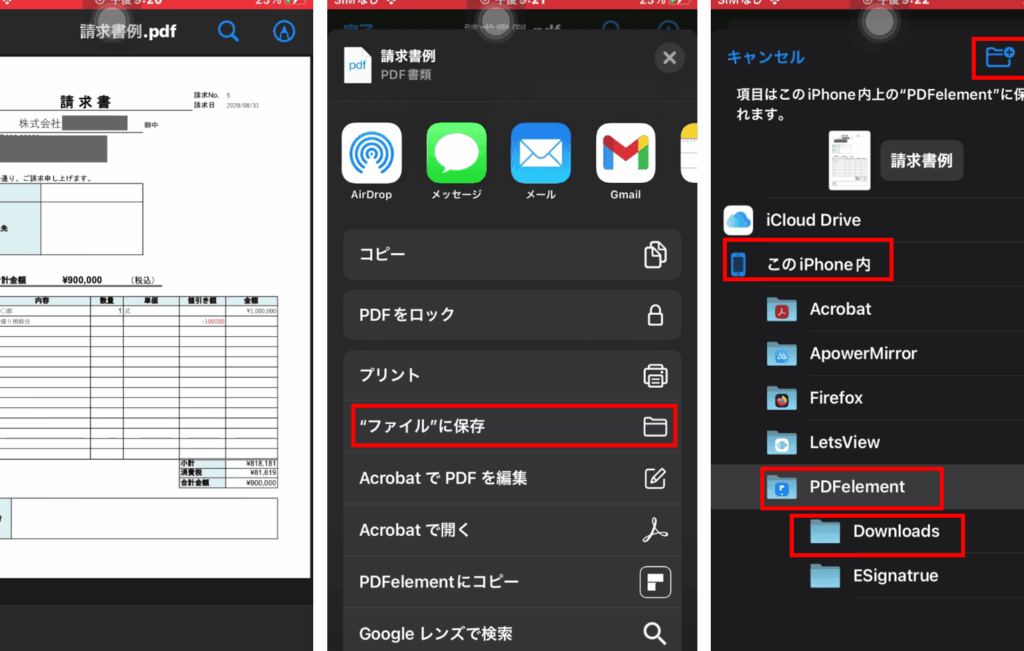 - 保存したPDFを選ぶ。 ファイルマネージャーからPDFを見つけます。