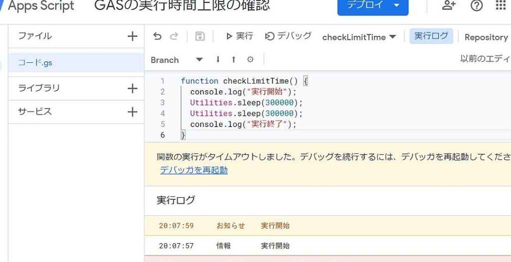 - エラーメッセージを確認する。 スクリプトが停止したことを確認する。