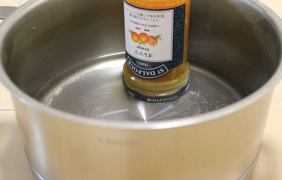 - 瓶の蓋部分だけを数分間浸ける。これによって金属部分が膨張します。