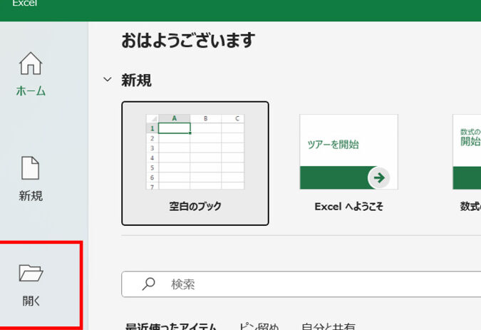 - Excelを起動します。