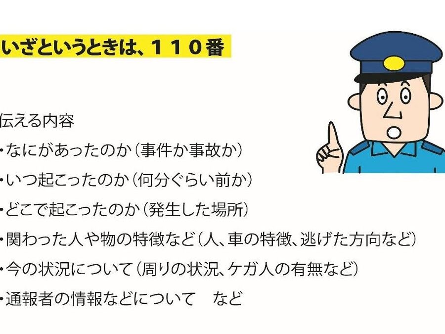 - 緊急通報番号: 日本では、緊急時には110番へ連絡することが基本です。