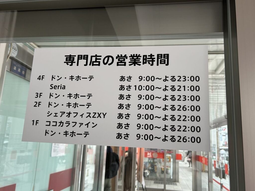 | ドンキホーテ東京 | 午前10時〜午後10時 | 午前9時〜午後11時 |