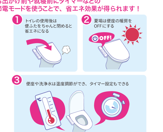 便座のふたを閉めることは、簡単にできる省エネ対策の一つです。ふたを閉じることで、エネルギーを効率的に利用し、無駄な電力消費を減らします。以下に、家庭や職場で実践できる方法を示します。