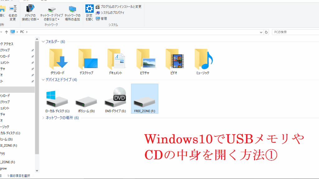 左側のメニューから「PC」または「マイコンピュータ」をクリックします。