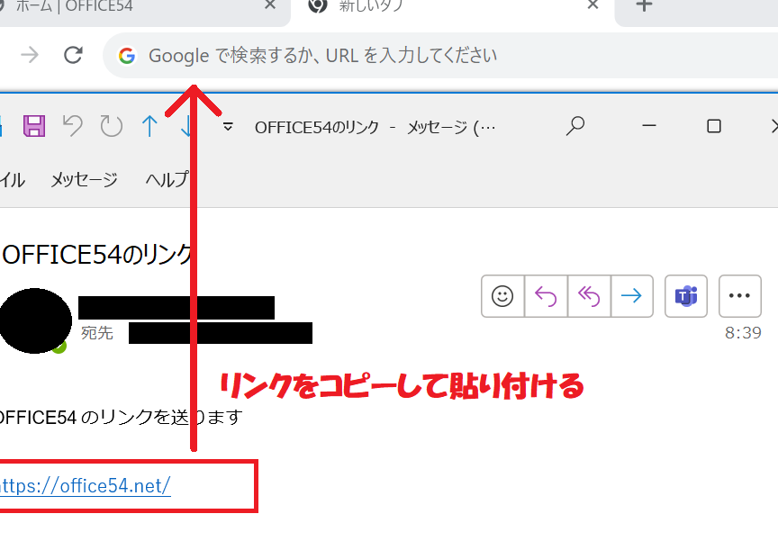 - リンクを手動でコピーしてブラウザに貼り付ける。 直接ブラウザにURLを貼り付けることで、開けるか試します。