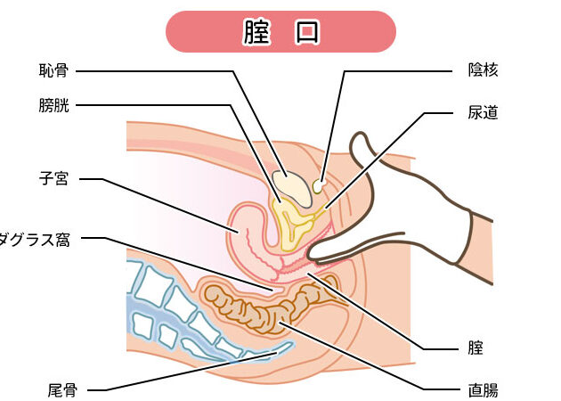 - 膣内の感触を確認する。 指を使って、子宮口の感じを確認します。